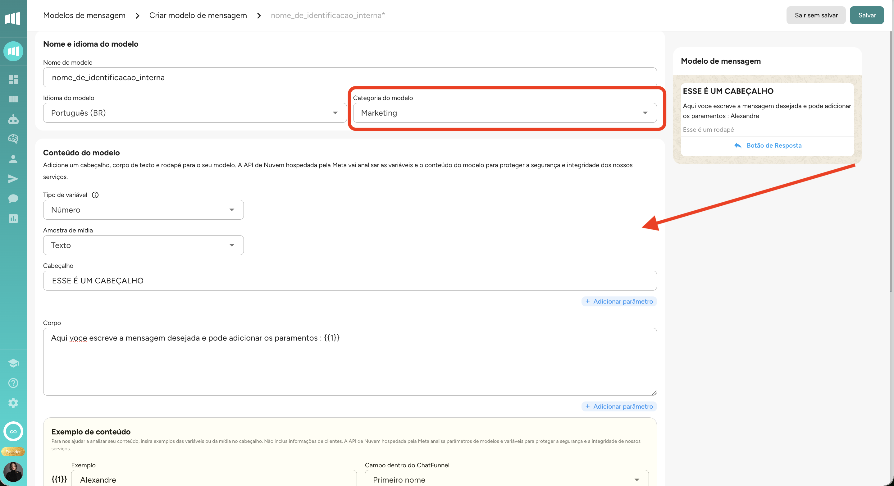 Após feito o modelo é enviado para a aprovação da META e identificação da categoria de mensagem que pode ser Marketing ou Utilidade, cada uma tem um custo de envio especifico.