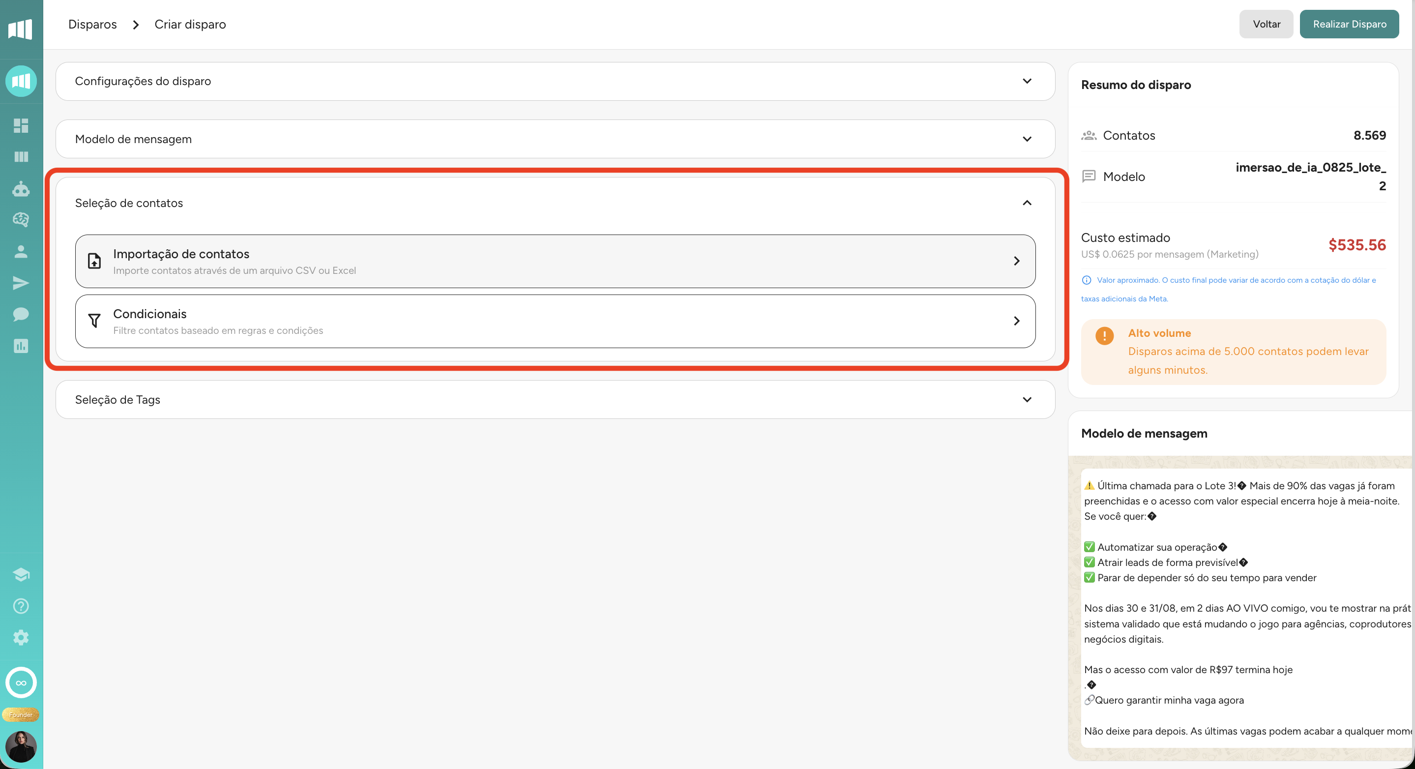 O Disparo em Massa é envio de uma mensagem em massa e segmentada para vários leads ao mesmo tempo.