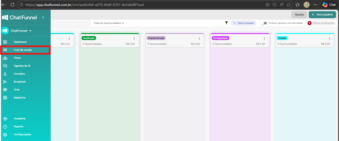 No menu lateral esquerdo, clique em Funil de Vendas.