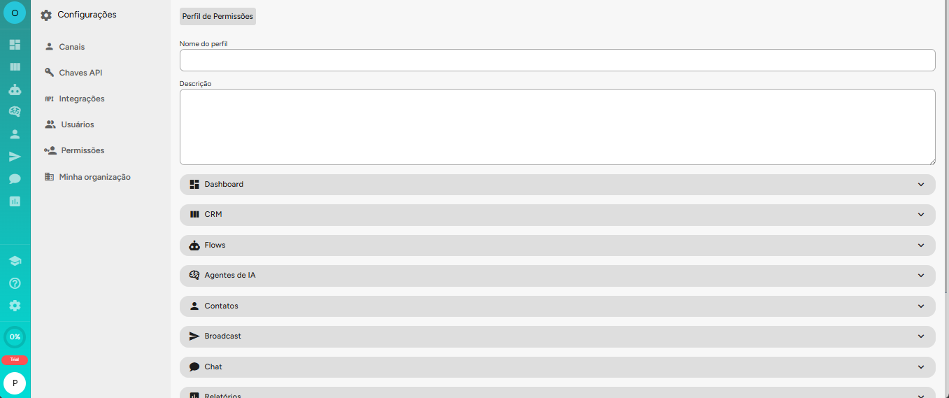 Isso é essencial para operações com múltiplos atendentes ou equipes, garantindo organização, segurança e controle de acesso às ferramentas da plataforma.