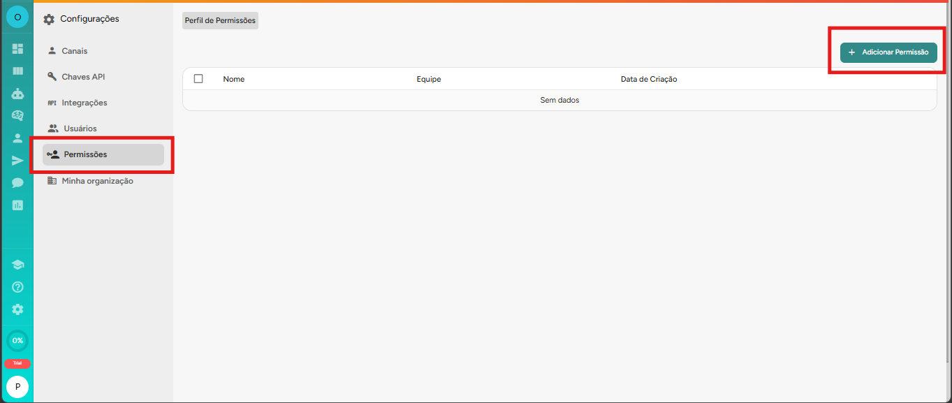 Em seguida, clique no botão + Adicionar Permissão para criar um novo perfil de acesso