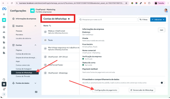 Valide se a conta do WhatsApp está vinculada corretamente à cobrança