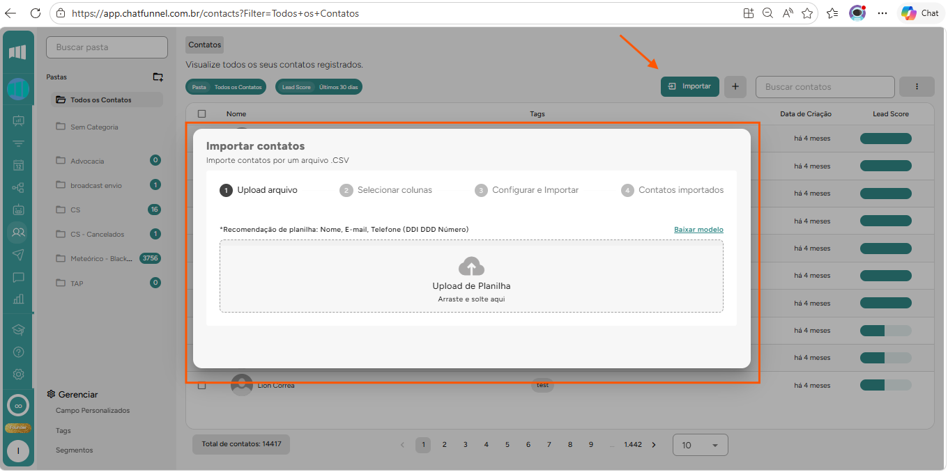 https://suporte.chatfunnel.com.br/pt-br/articles/41-%F0%9F%93%A5-como-importar-contatos-para-a-chatfunnel-usando-uma-planilha