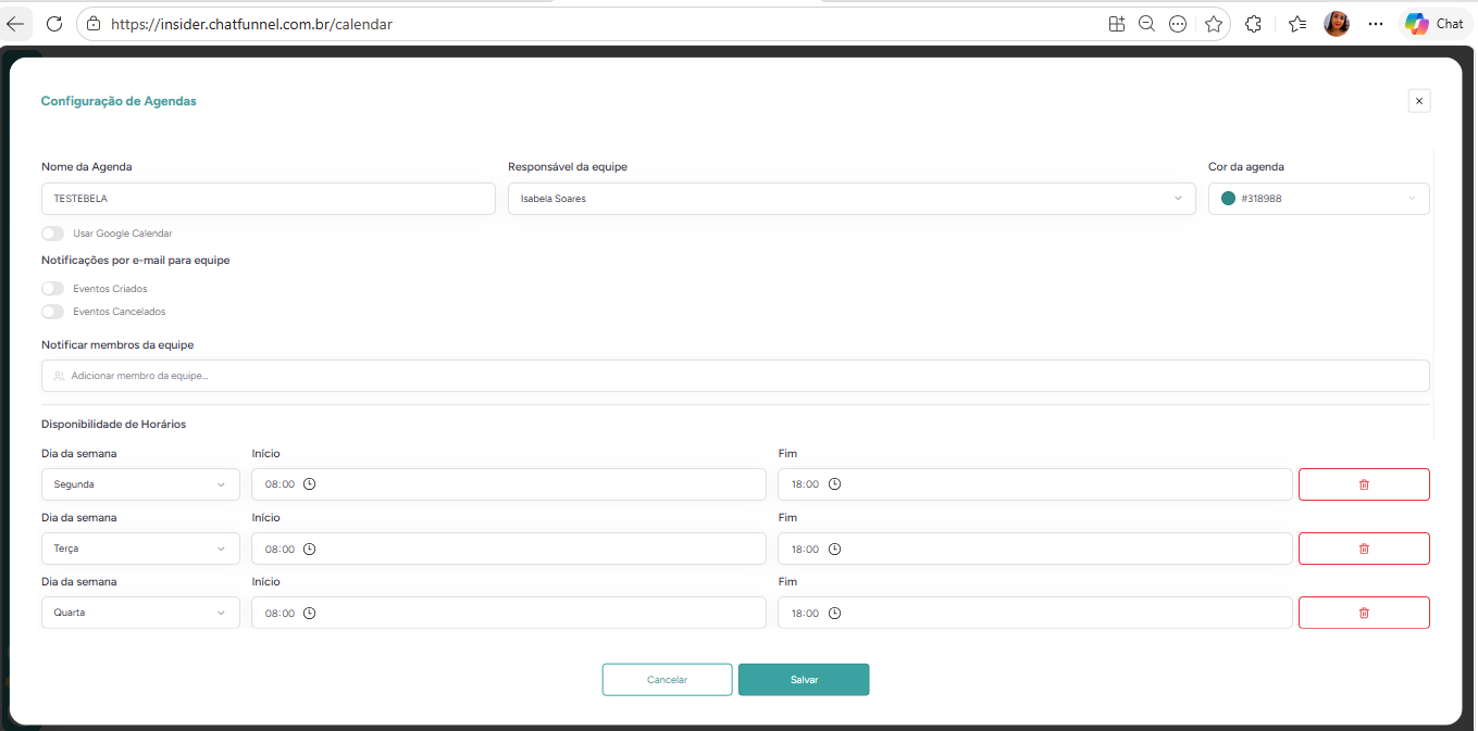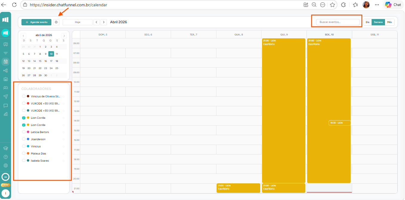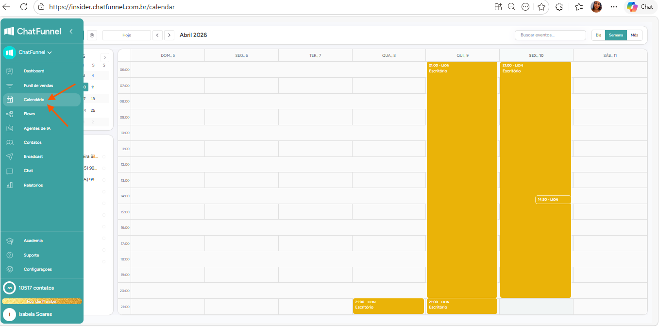 A agenda nativa do ChatFunnel permite centralizar e gerenciar todos os compromissos diretamente na plataforma, sem necessidade de ferramentas externas. É possível: