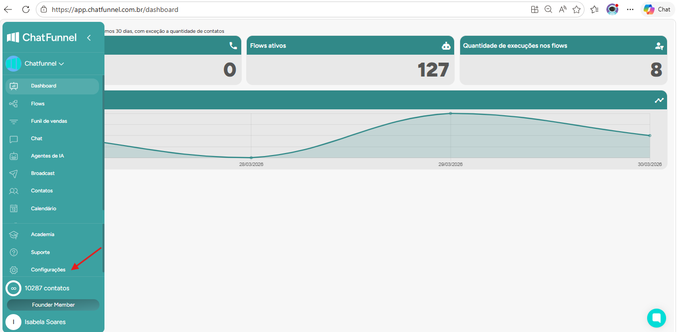 Você pede algo na IA (ex: criar automação, buscar contato) e o ChatFunnel executa automaticamente.