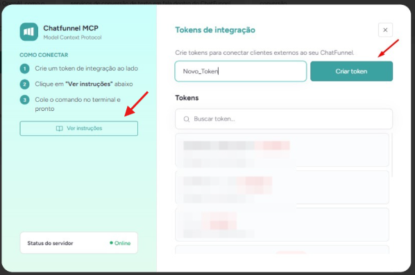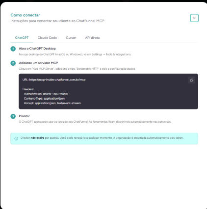 Esse token será utilizado para conectar a IA ao ChatFunnel